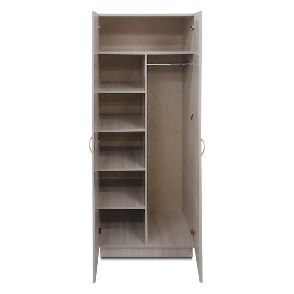 • Внутри шкафа: 2 отдела — 1 отдел со штангой (+1 полка) и 1 отдел с 5 полками
